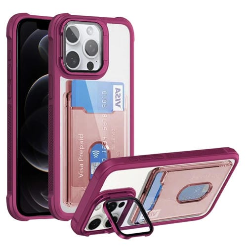 Funda para Teléfono iPhone 12 Pro TPU Híbrido Acrílico Soporte para Tarjeta (Rojo)