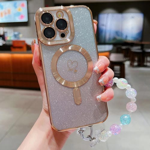 Estuche para Teléfono iPhone 12 Pro Loves Gradient Glitter Bracelets TPU Magsafe Fibra de Carbono (Dorado)