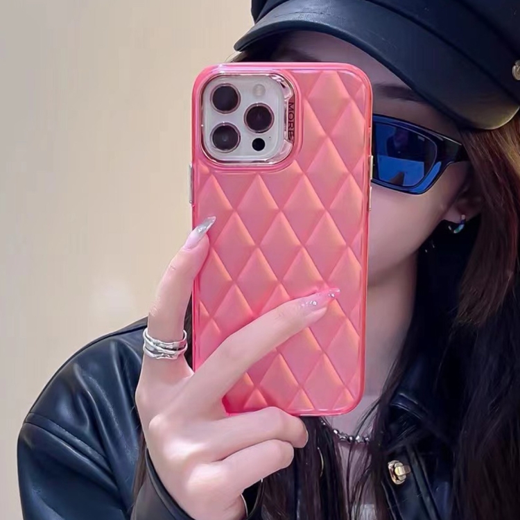 Funda híbrida para iPhone 12 Pro Max 3D Rhombus galvanoplastia TPU y PC (Rojo Rosa)