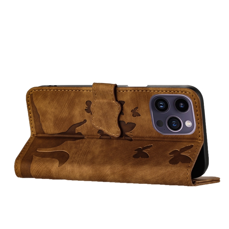 Funda de Teléfono iPhone 12 Pro Max Butterfly Cat Cuero con Tapa En Relieve (Marrón)