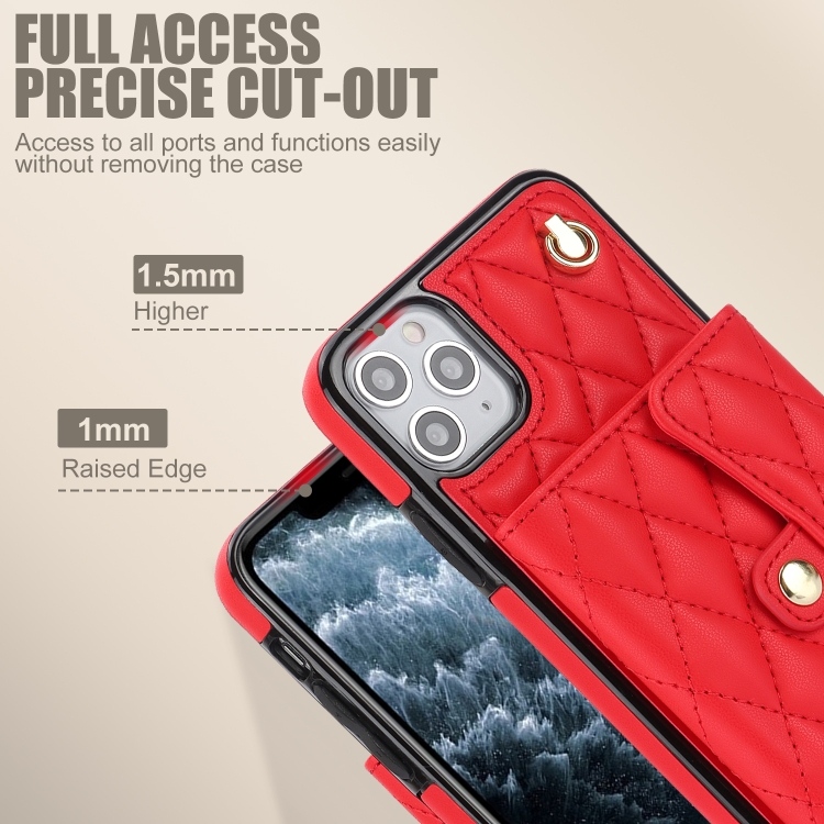 Funda de cuero para iPhone 12 Pro Max Crossbody Rhombic Horizontal Wallet (Rojo)