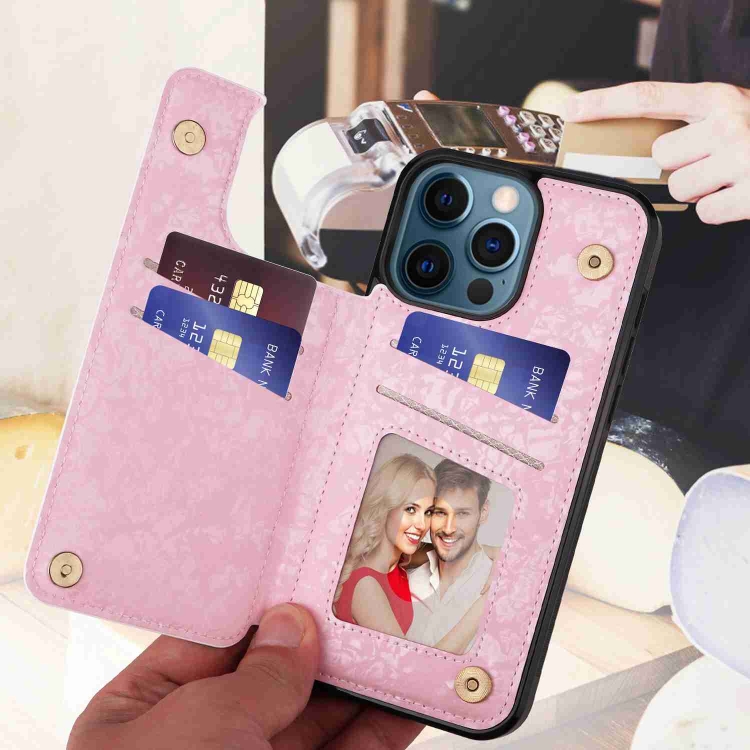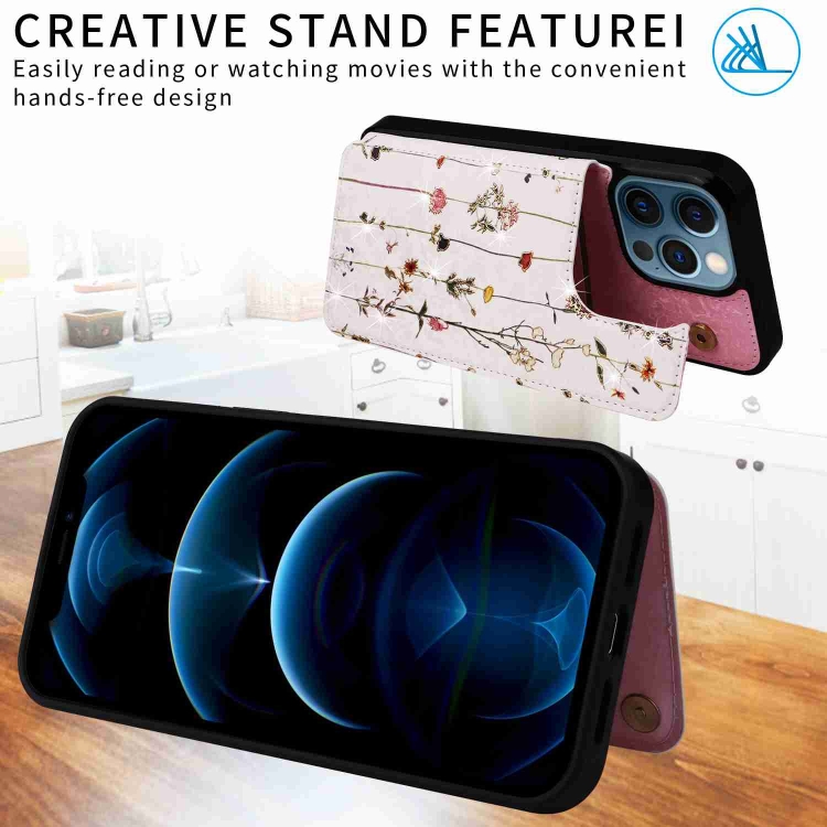 Estuche Antirrobo Rfid para iPhone 12 Pro Max con Doble Hebilla Impresa (Mundo de Flores Secas)