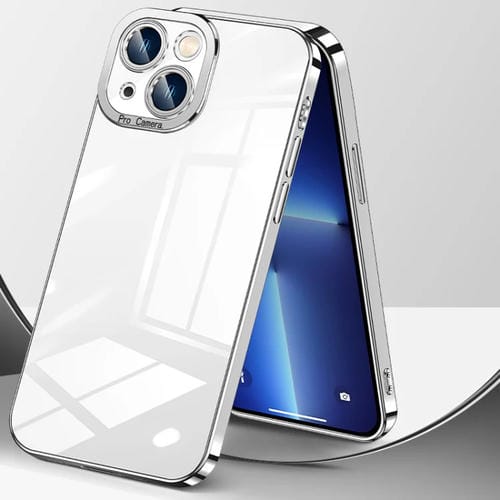 Estuche para teléfono iPhone 12 Pro Max alta transparencia chapado en cristal (Blanco Plateado)