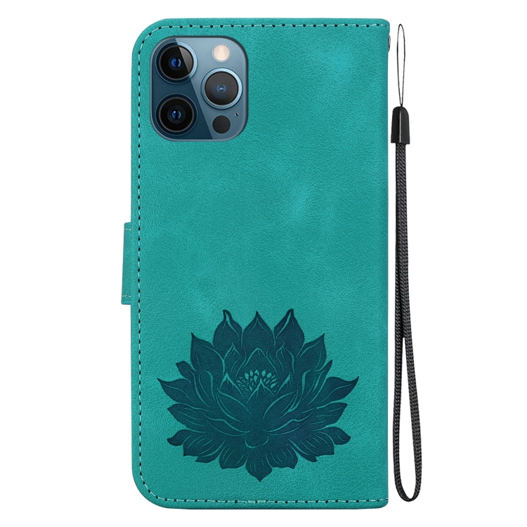 Funda para iPhone 12 Pro Max Cuero con Relieve de Loto (Verde)