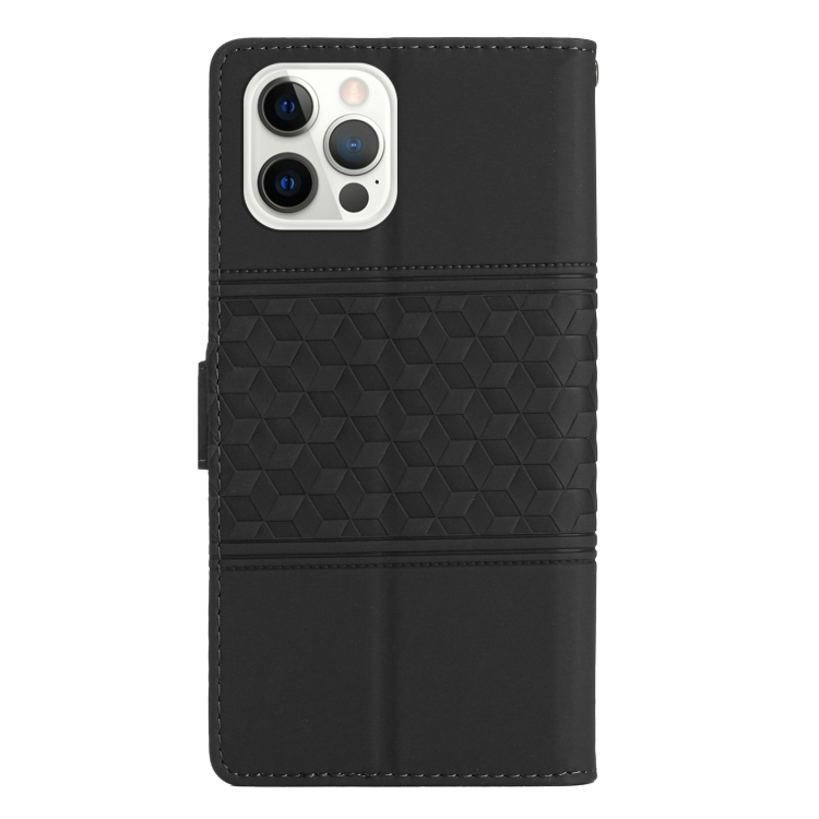Funda de Cuero para Teléfono iPhone 12 Pro Max con Tacto de Piel En Relieve y Cordón (Negro)