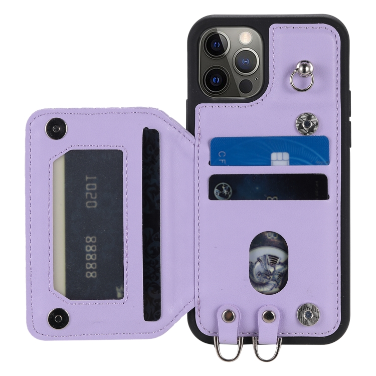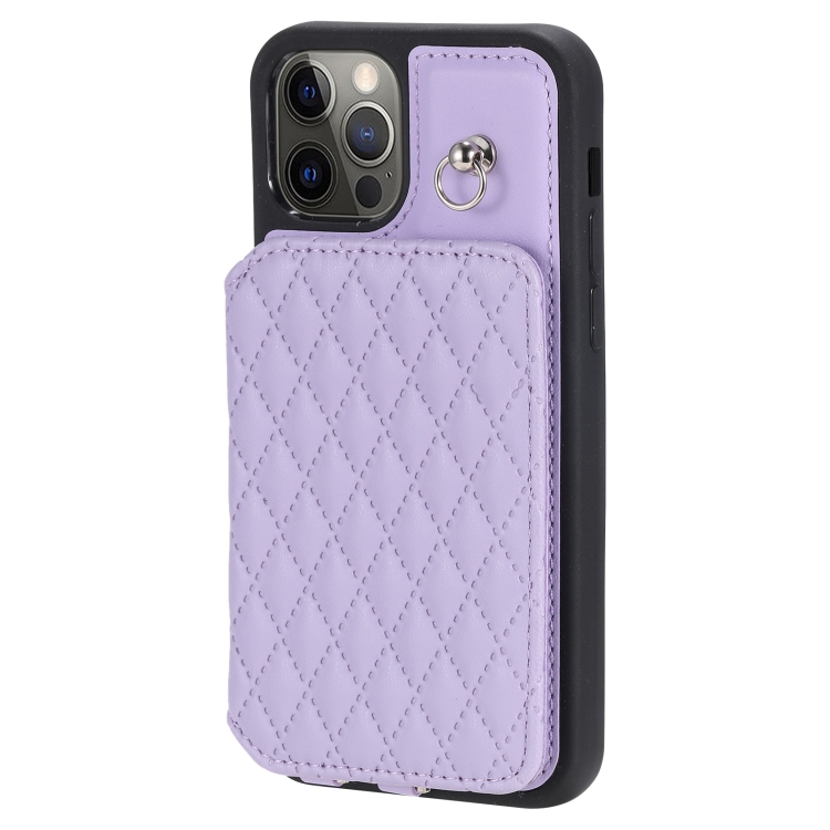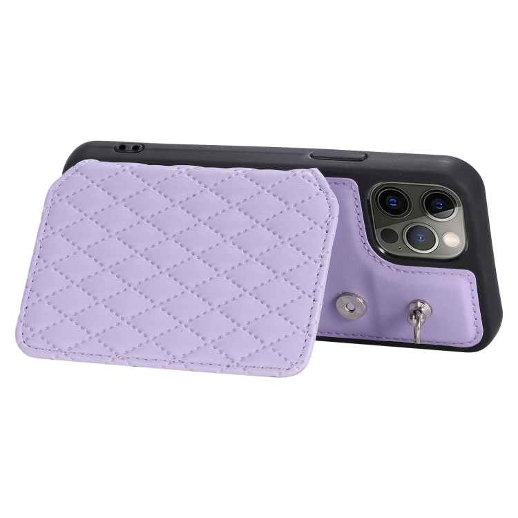 Funda para Teléfono iPhone 12 Pro Max Bolsa para Tarjetas Textura de Rejilla y Cordón (Púrpura)