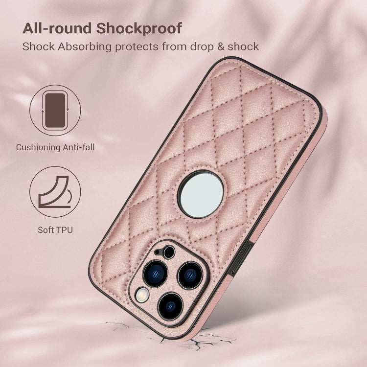 Funda para Teléfono iPhone 12 Pro Max con Contraportada de Cuero Rómbico (Oro Rosa)