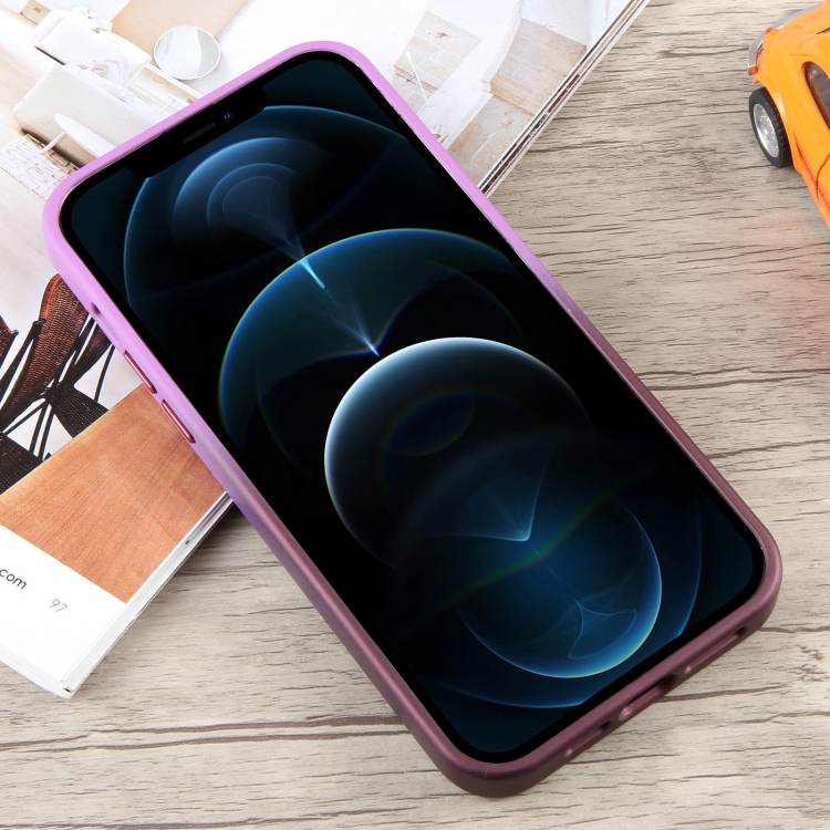 Funda para teléfono iPhone 12 Pro Max con Soporte Magsafe y Silicona Líquida Gradiente (Rojo Vino Púrpura)