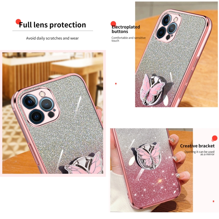 Funda para teléfono TPU iPhone 12 Pro Max Soporte Mariposa Brillo Degradado (Rosa)