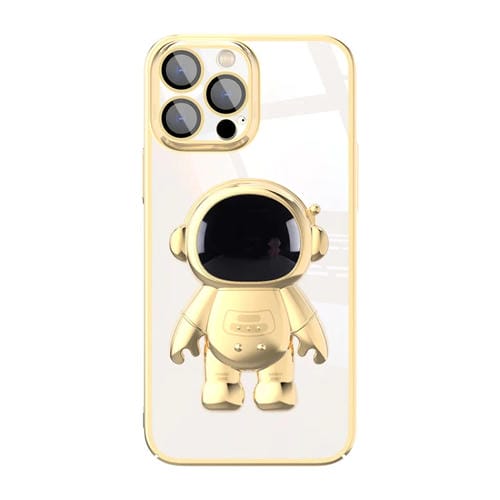 Funda para iPhone 12 Pro Max Galvanoplastia PC Astronaut Holder con Lente Film (Oro)