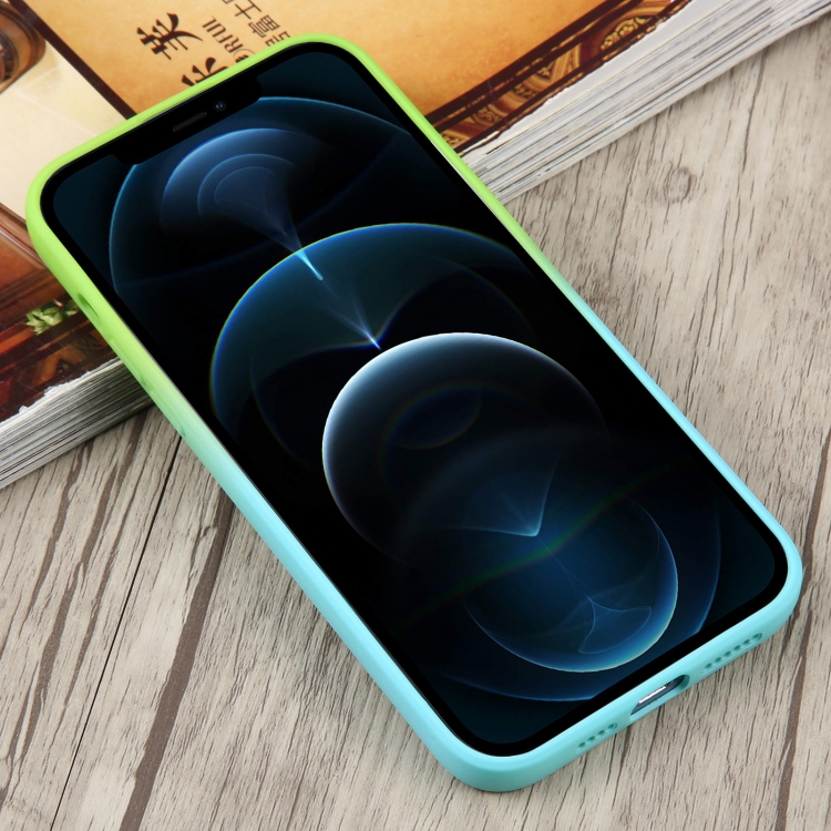 Funda para iPhone 12 Pro Max Liquid TPU Silicone Gradient Magsafe (Azul Cian)