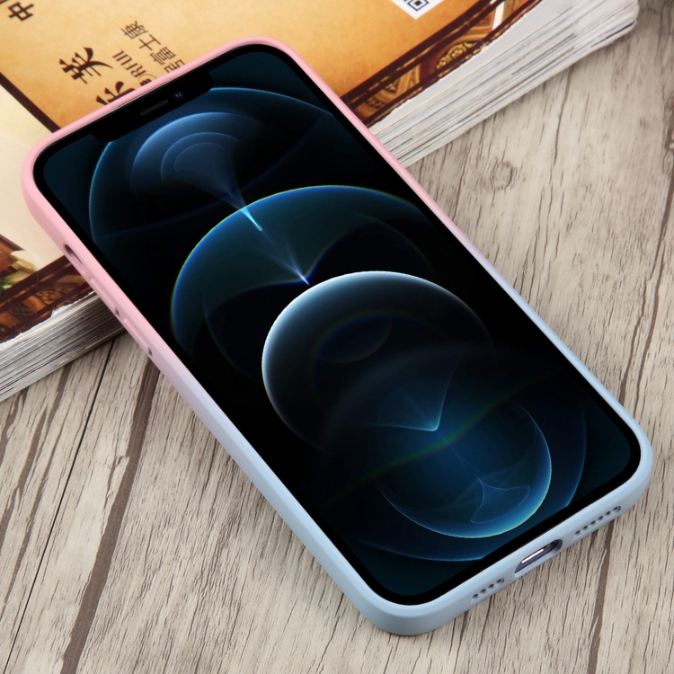 Funda para iPhone 12 Pro Max Liquid TPU Silicone Gradient Magsafe (Rosa Azul)