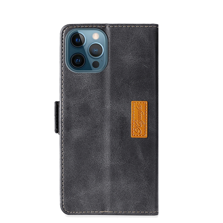 Funda de Cuero para iPhone 12 Pro Max Retro Textura Contraste Hebilla Lateral Tapa Horizontal Soporte Ranuras para Tarjetas Billetera (Negro)