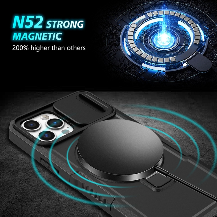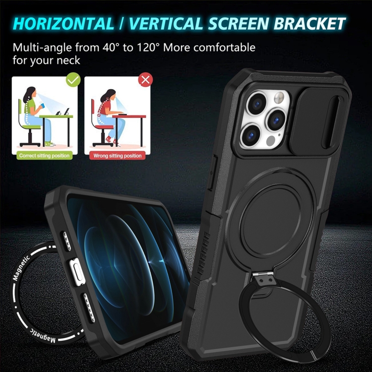 Funda para Teléfono iPhone 12 Pro Max Sliding Camshield Magsafe Holder TPU Hybrid PC (Negro)