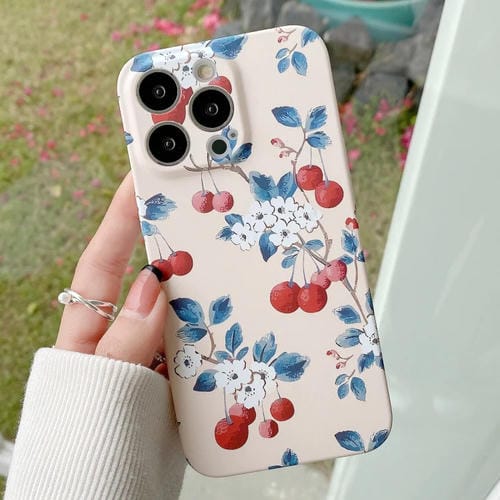Funda para iPhone 12 Pro PC Water Sticker Flower Pattern (Cereza)