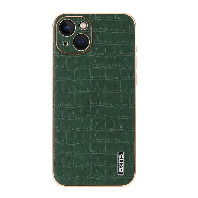 Estuche para teléfono Azns para iPhone 13 cobertura total textura de cocodrilo marco galvanizado (Verde)