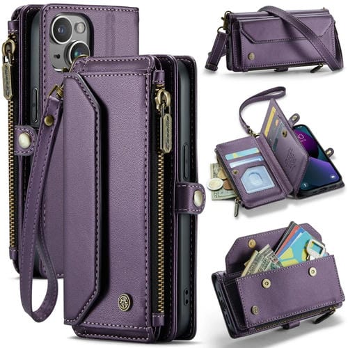 6. 10 ranuras para tarjetas + 2 ranuras para efectivo + 1 monedero con cremallera + Correa de hombro larga + correa de mano corta (basada en la imagen)