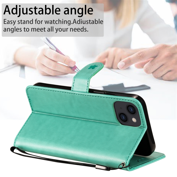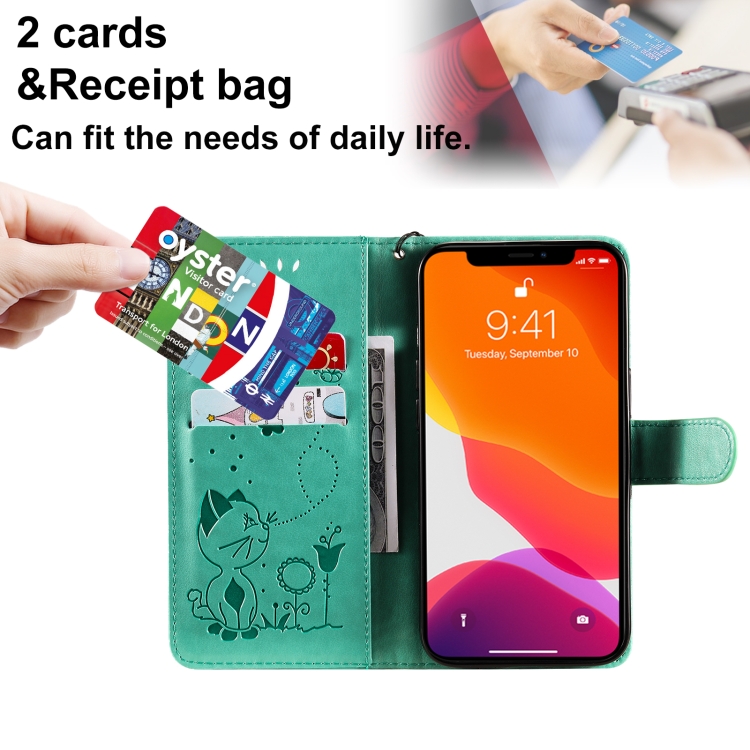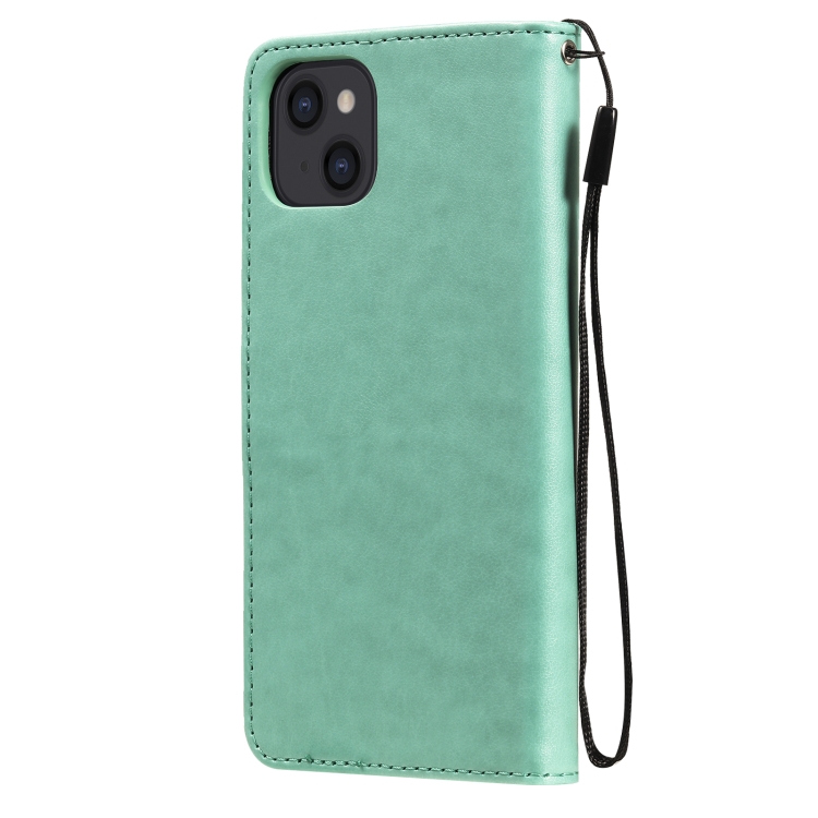 Funda de Cuero Cat Bee para iPhone 13 con Tapa Horizontal, Soporte, Ranuras para Tarjetas y Billetera (Verde)