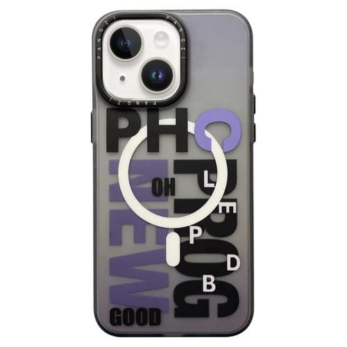 Estuche para Teléfono iPhone 13 IMD Magsafe Esmerilado Doble Capa (Letras Degradadas Moradas)