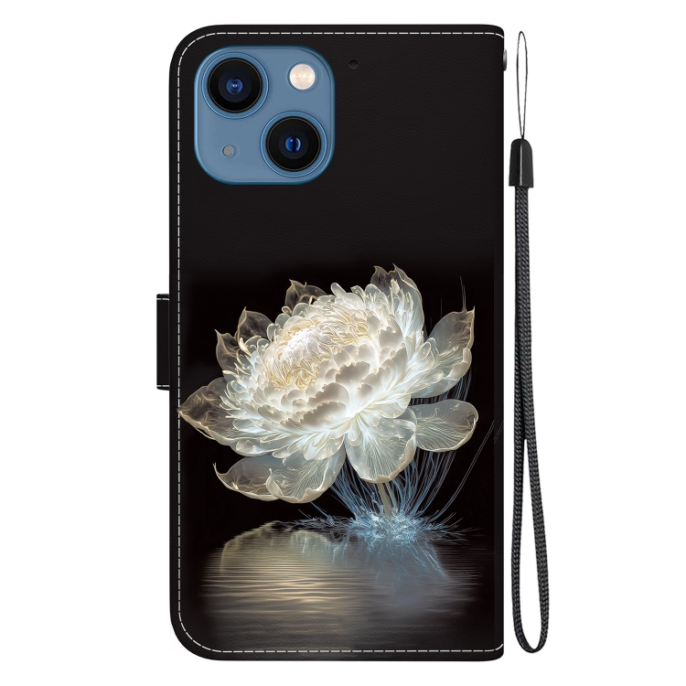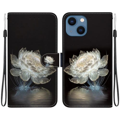 Funda de Cuero iPhone 13 Dibujo Coloreado Textura de Cristal (Peonía de Cristal)
