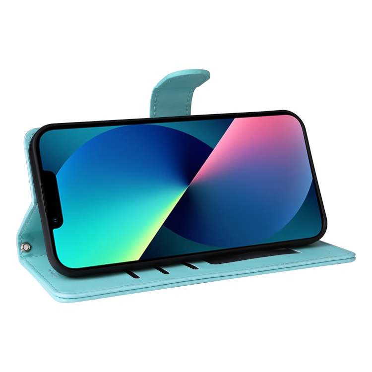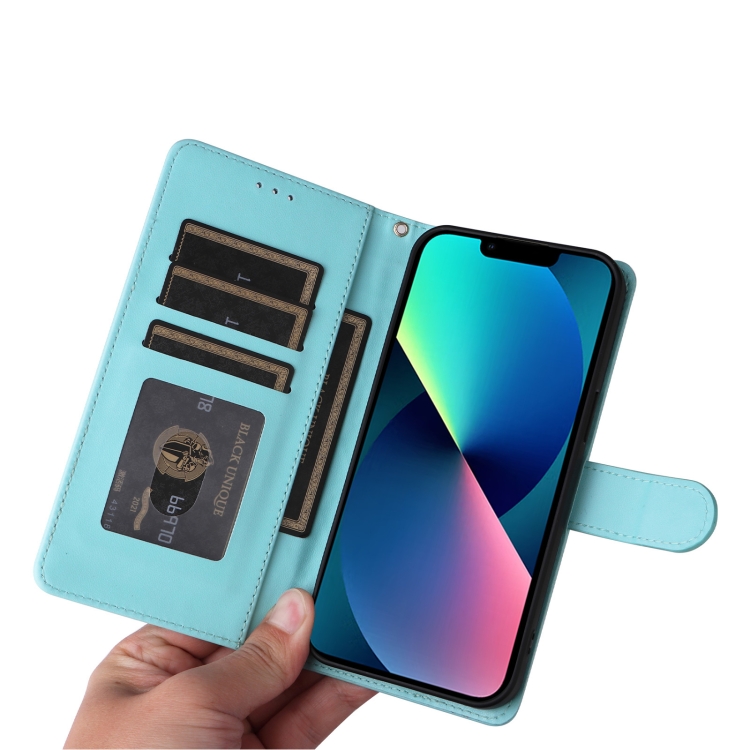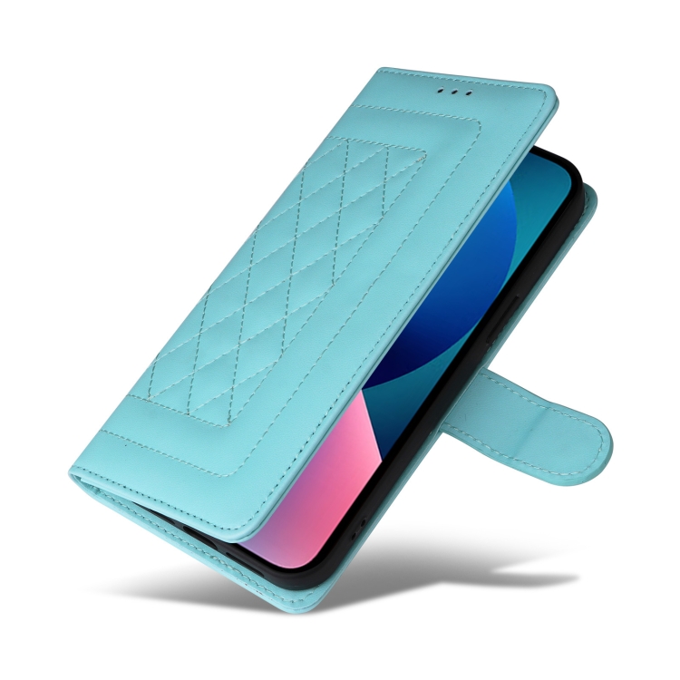 Funda de Teléfono iPhone 13 con Tapa de Cuero Diamond Lattice (Verde Menta)