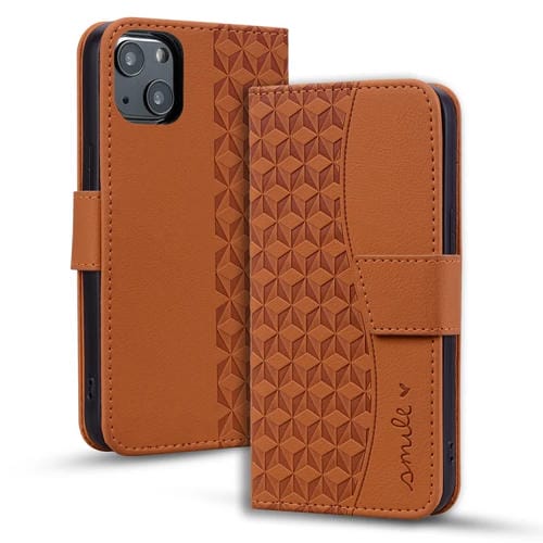 Funda de Teléfono iPhone 13 Cuero Hebilla Diamante Empresarial Cordón (Marrón)