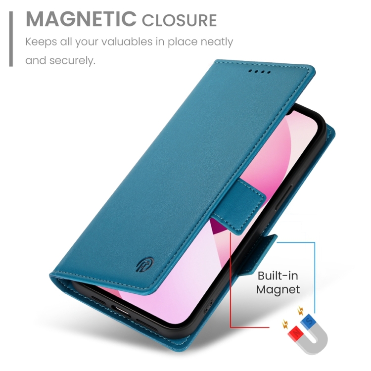 Funda para Teléfono iPhone 13 Cuero Esmerilado Magnético con Hebilla Lateral (Azul)
