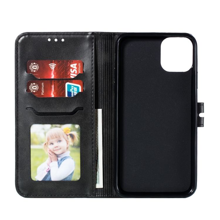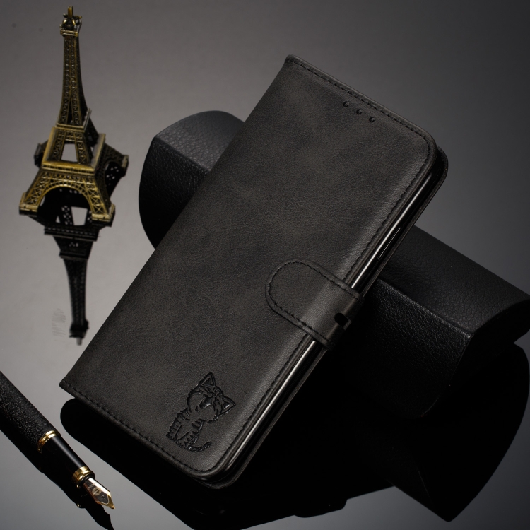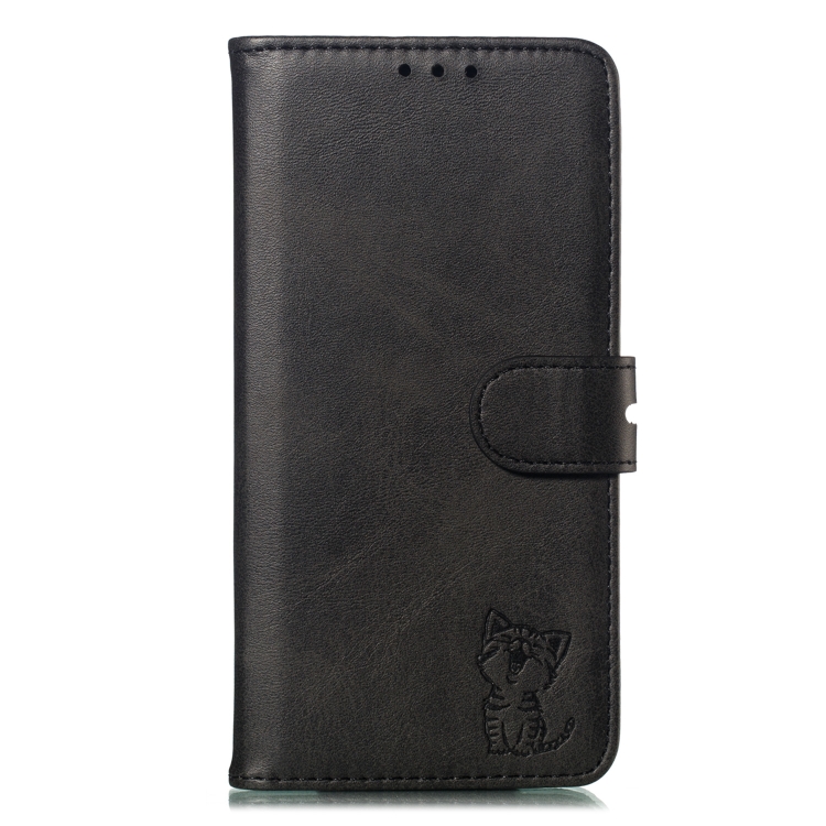 Funda de Cuero para iPhone 13 Mini Happy Cat Pattern con Tapa Horizontal Soporte y Ranuras para Tarjetas (Negro)