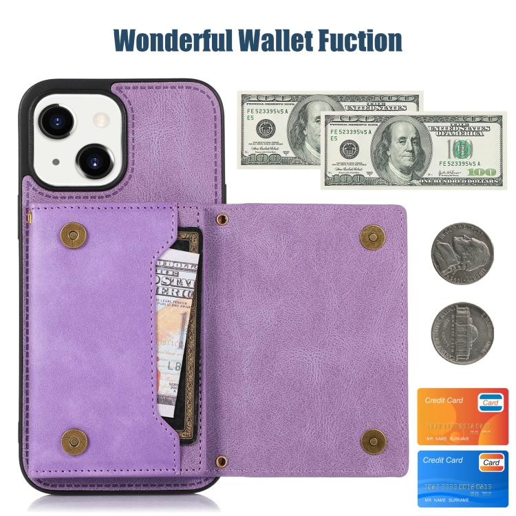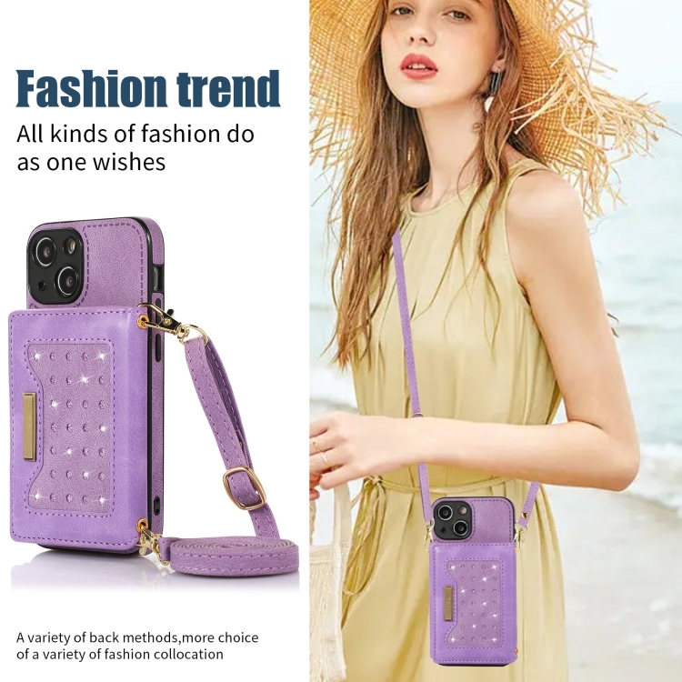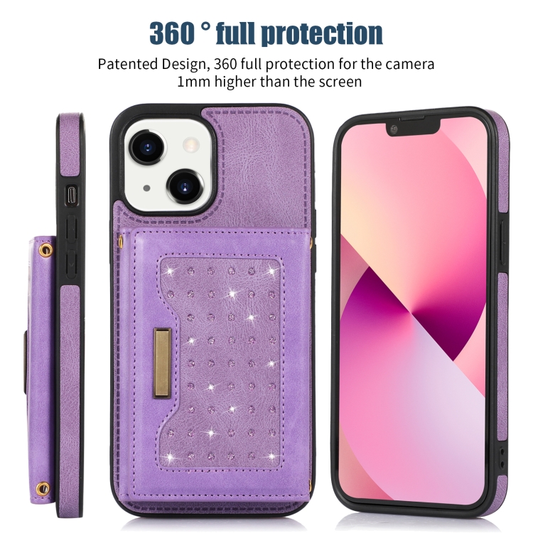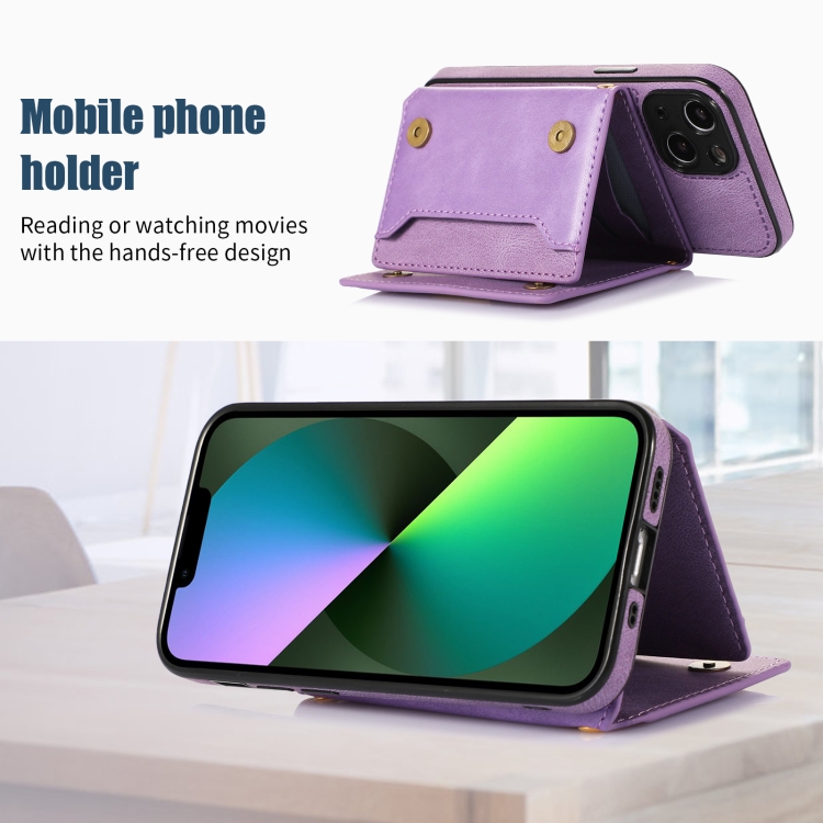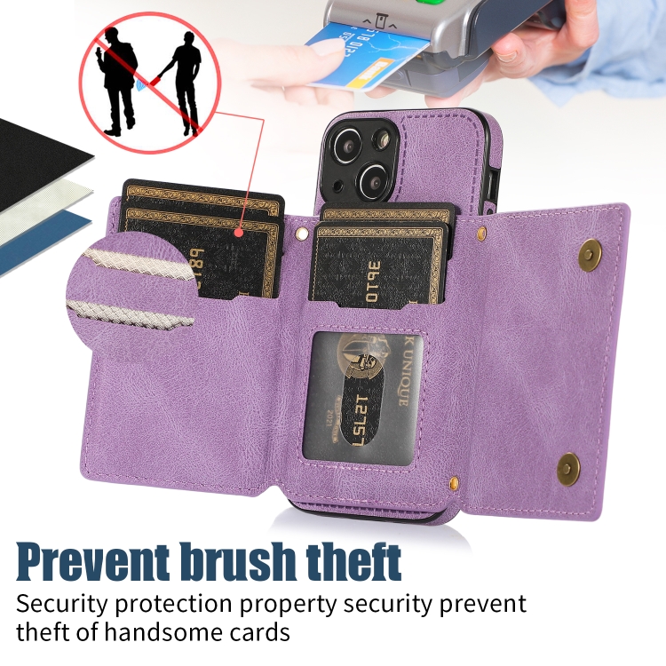 Funda de Teléfono iPhone 13 Mini Cuero Rfid Tres Pliegues con Cordón (Púrpura)