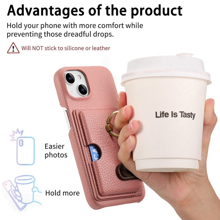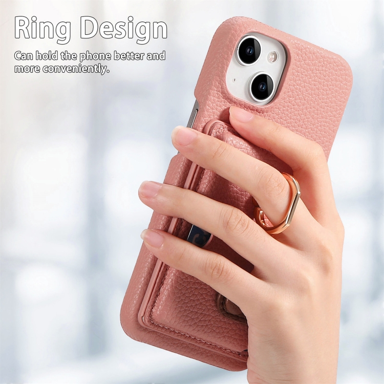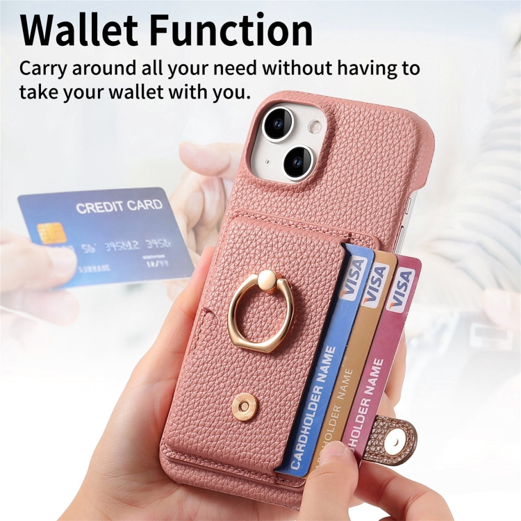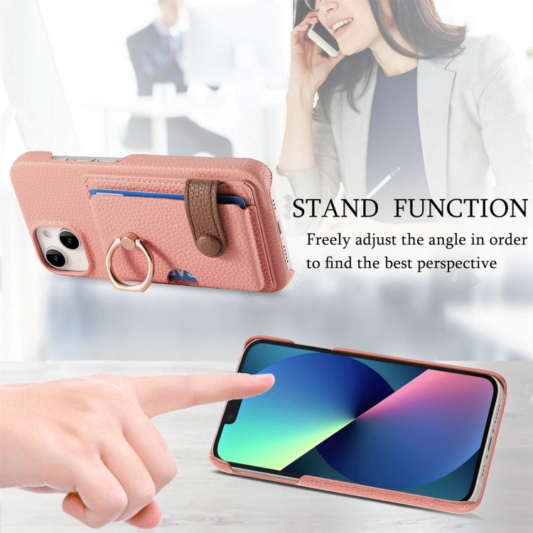 Funda para Teléfono iPhone 13 Mini Borde de Aceite Cuero Litchi Anillo Trasero y Tarjeta (Rosa)
