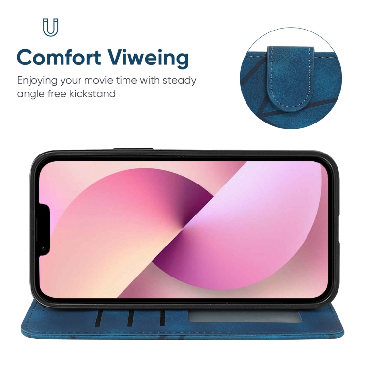 Funda para iPhone 13 Mini Skin Feel Cuero con Líneas Geométricas (Azul)
