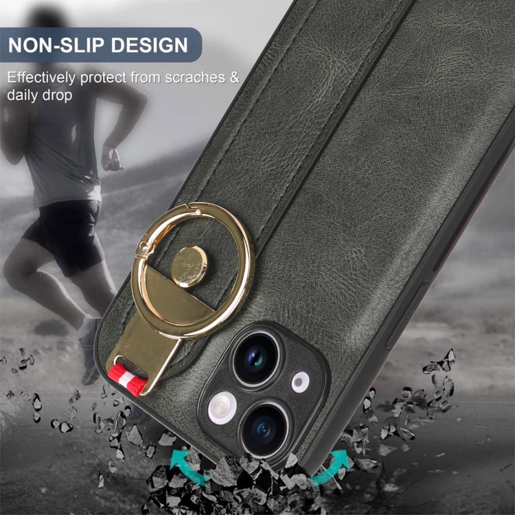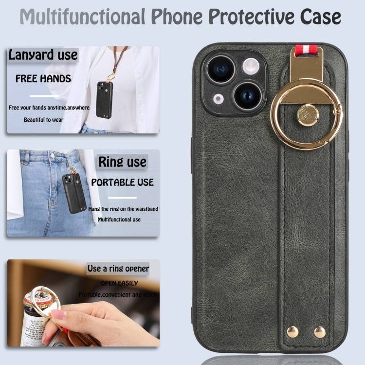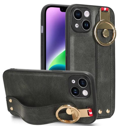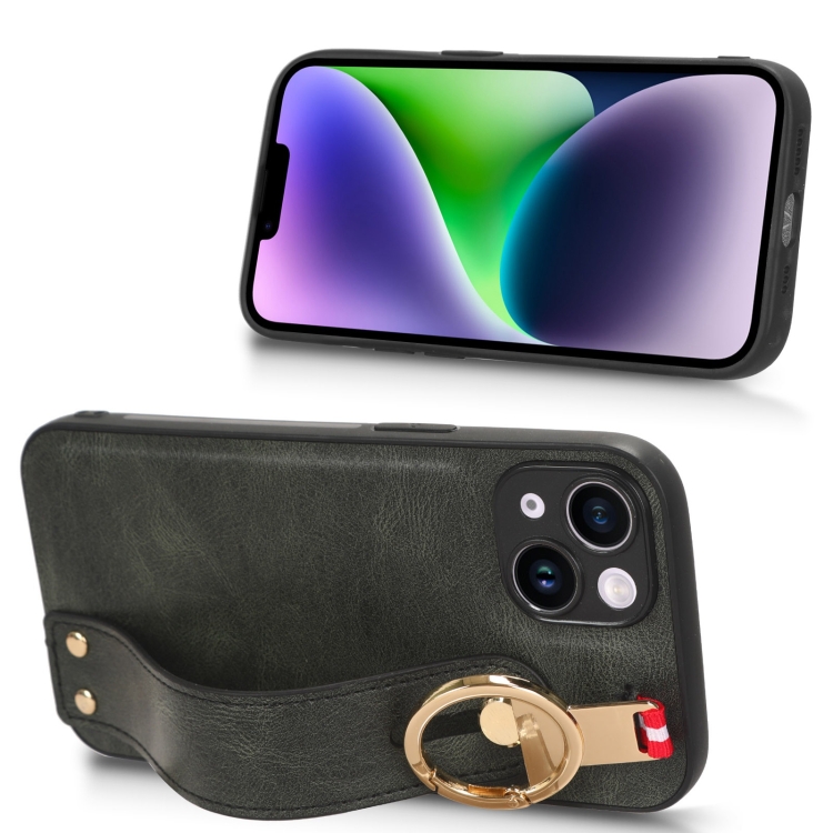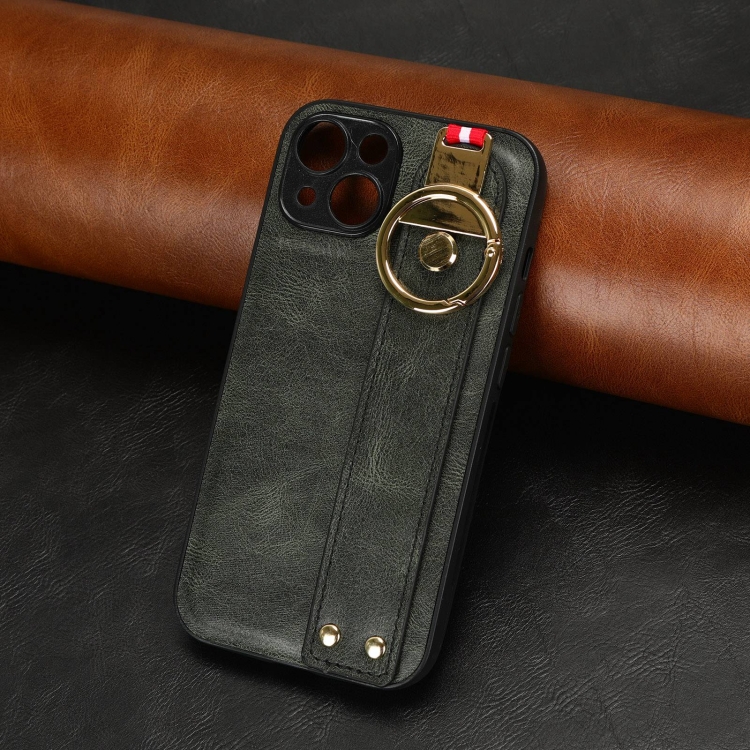Funda Trasera para iPhone 13 Muñequera de Cuero para Teléfono (Verde)