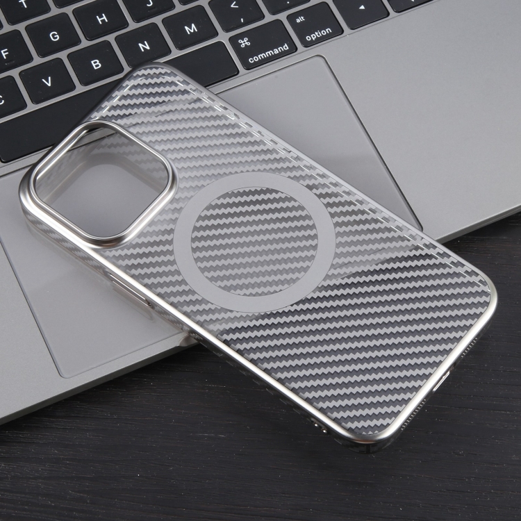 Caja de Teléfono para iPhone 13 Pro PC Magsafe Transparente con Fibra de Carbono (Negro Estrellado)