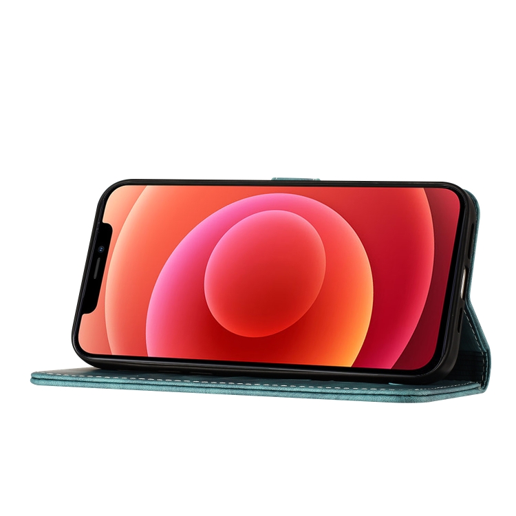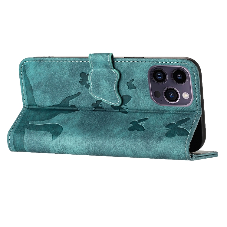 Funda para Teléfono iPhone 13 Pro Butterfly Cat Cuero con Tapa en Relieve (Wathet)