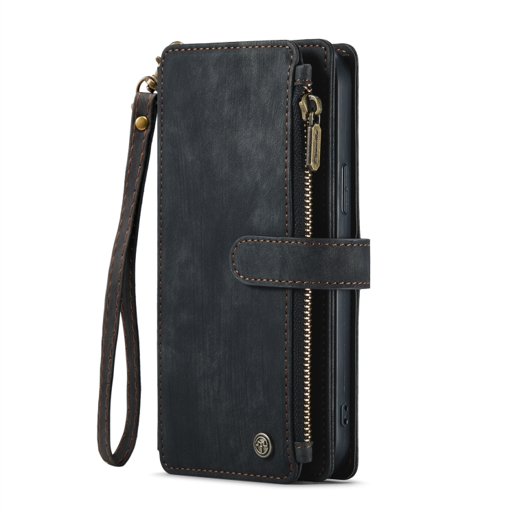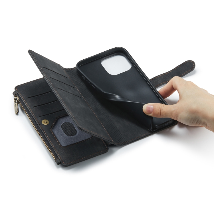 Estuche para iPhone 13 Pro Caseme-C30 PU + TPU Cuero Tapa Horizontal Multifuncional Soporte Ranura Tarjeta Billetera Bolsillo Cremallera (Negro)