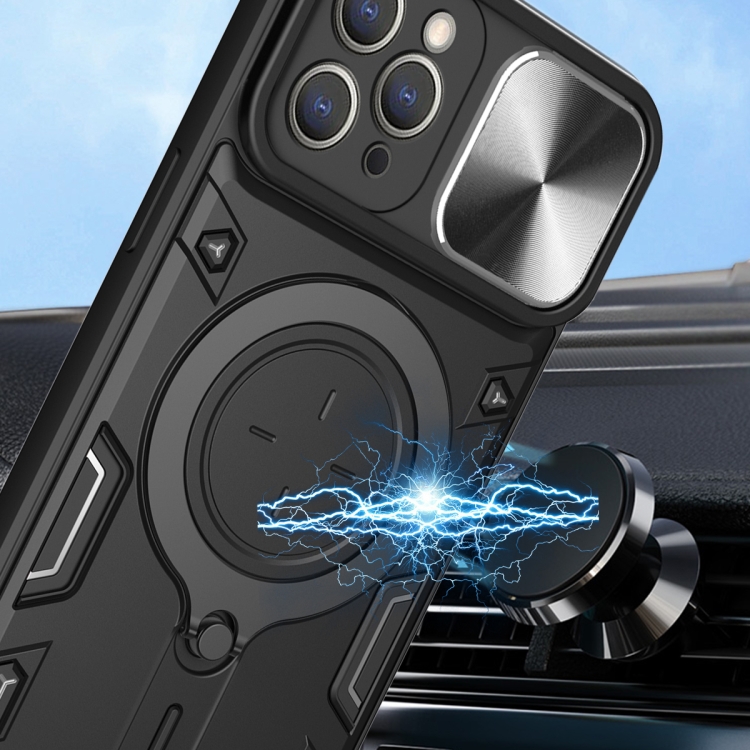 Funda para Teléfono iPhone 13 Pro Cd Textura Deslizante Camshield Soporte Magnético (Azul)