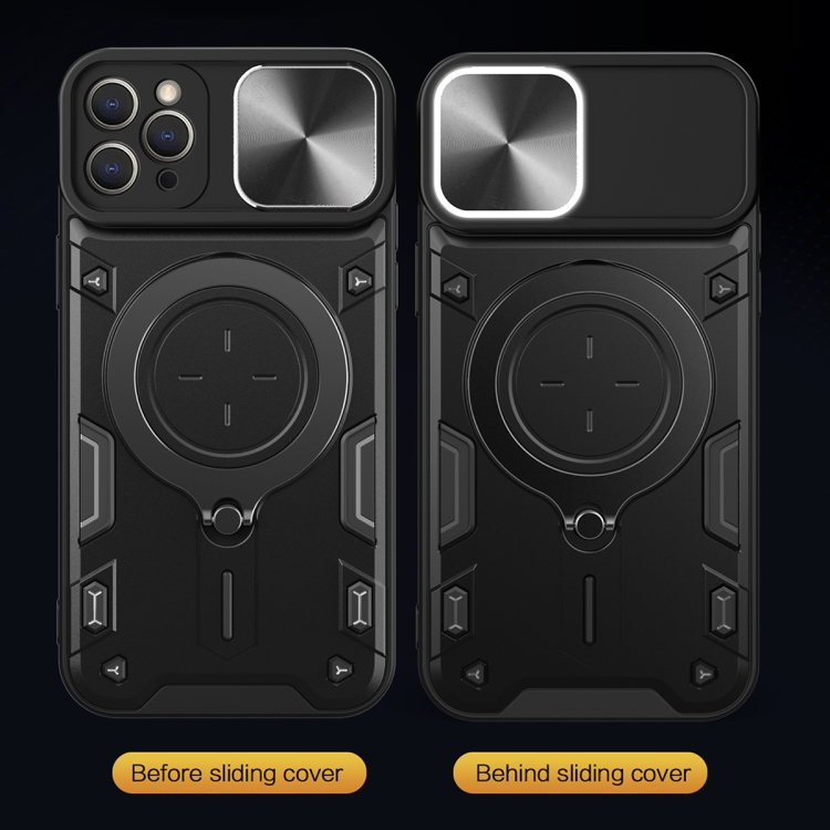 Funda para Teléfono iPhone 13 Pro Cd Textura Deslizante Camshield Soporte Magnético (Negro)