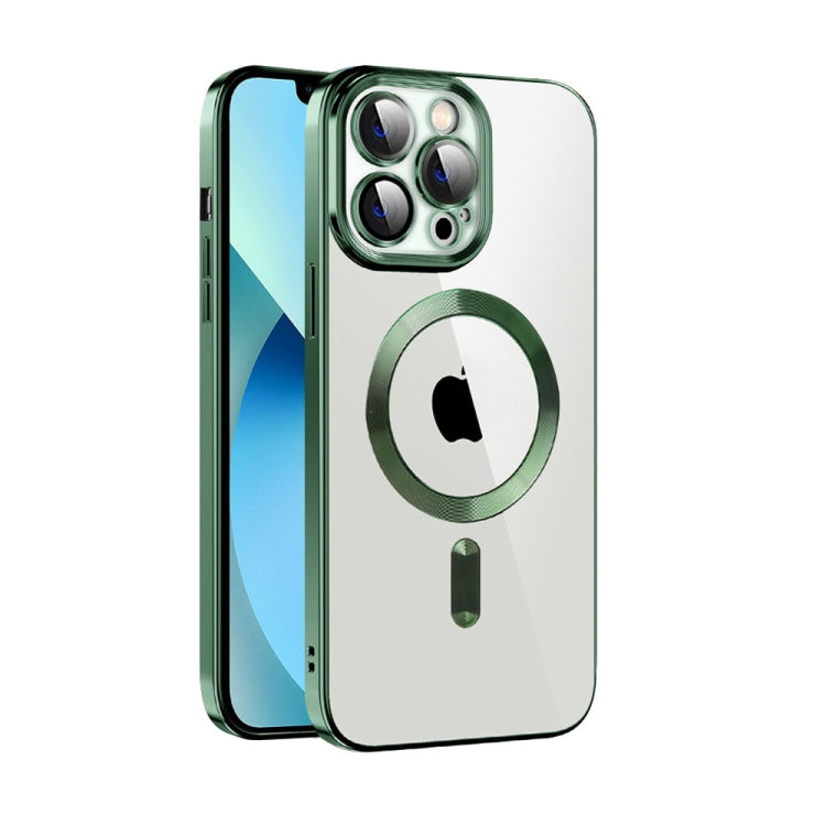 Funda para teléfono iPhone 13 Pro Cd Texture Plating TPU Magsafe con Película de Lente (Verde Oscuro)