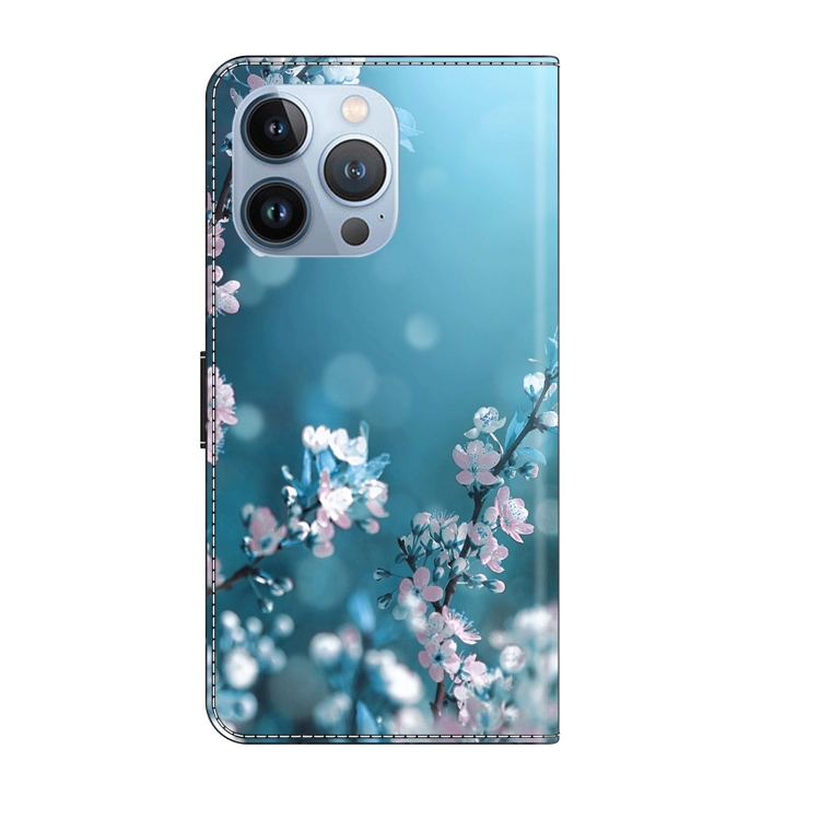 Funda Protectora de Cuero para iPhone 13 Pro Crystal 3D a Prueba de Golpes (Flor de Ciruelo)