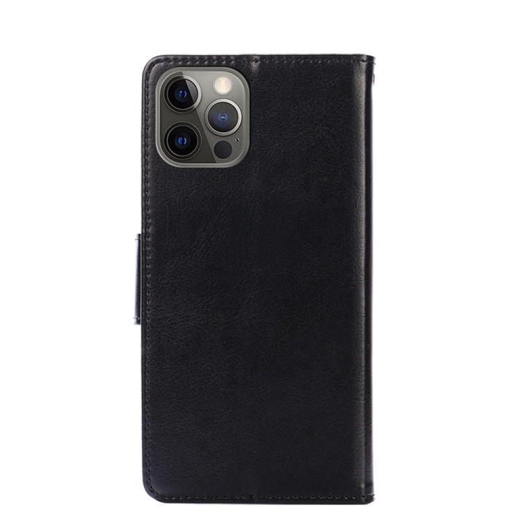 Funda de Cuero para iPhone 13 Pro Crystal Texture con Tapa Horizontal Soporte Ranuras y Billetera (Negro)