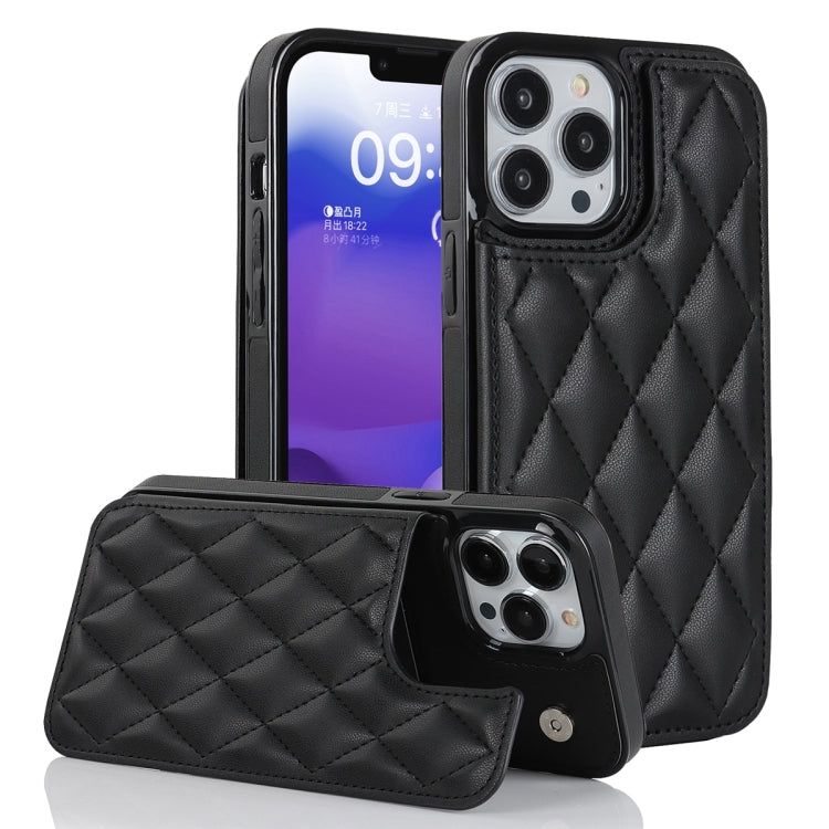 Estuche para Teléfono iPhone 13 Pro Cuero de Pu Rombal con Doble Hebilla (Negro)