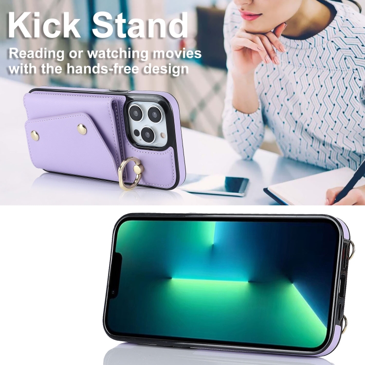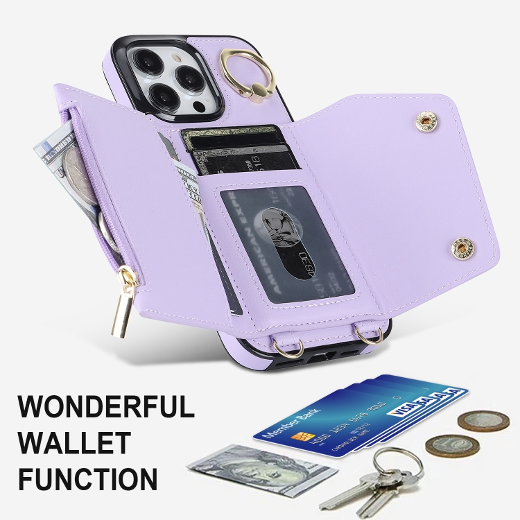 Funda para iPhone 13 Pro con Cremallera y Doble Cordón (Púrpura)