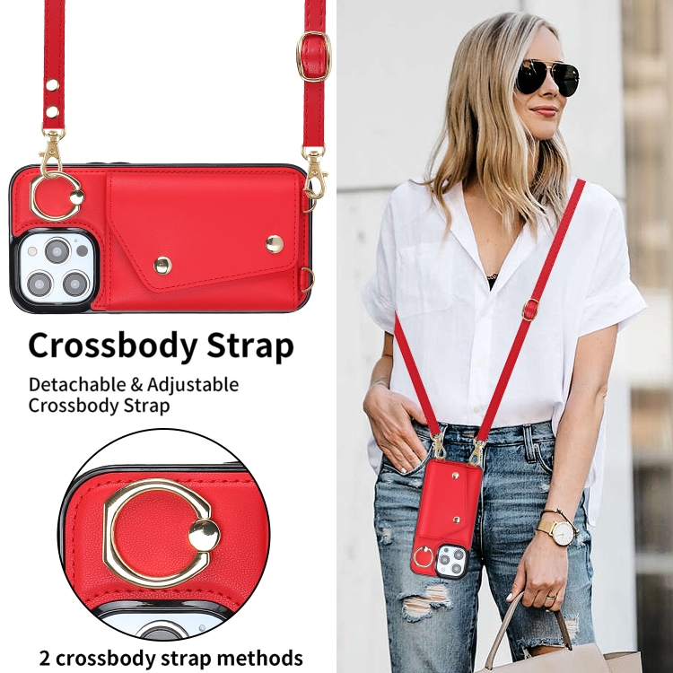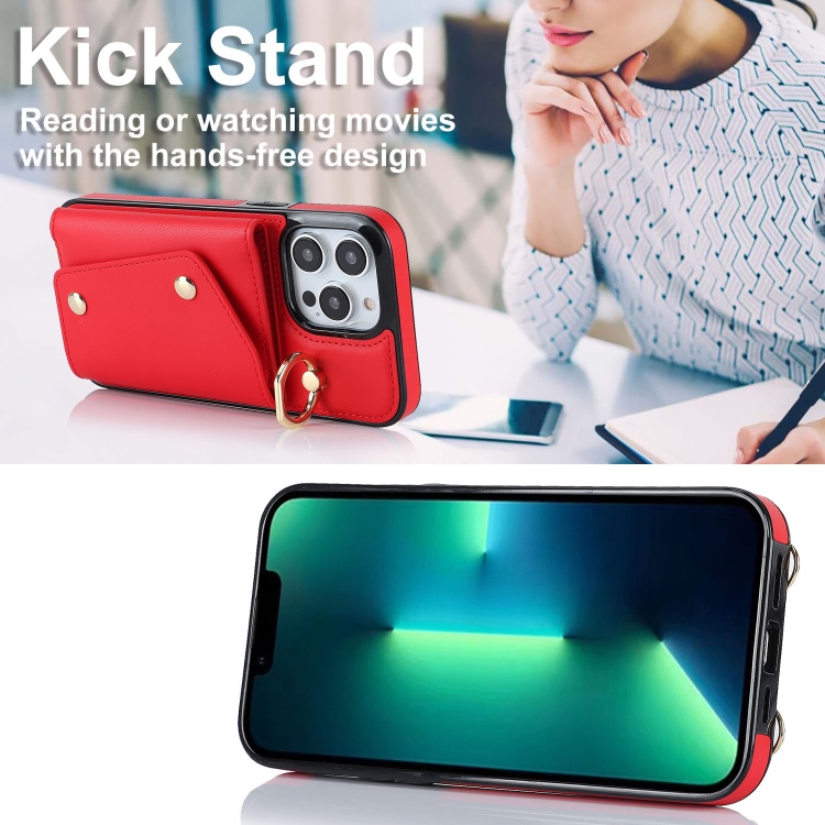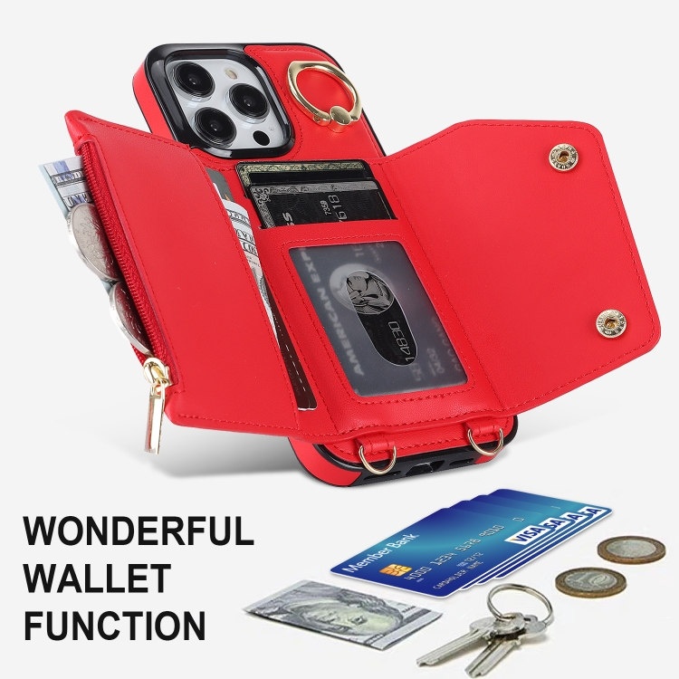 Funda para Teléfono iPhone 13 Pro con Cremallera y Doble Cordón (Rojo)