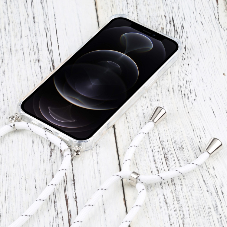 Funda Protectora TPU para iPhone 13 Pro a Prueba de Golpes con Cordón (Blanco y Negro)
