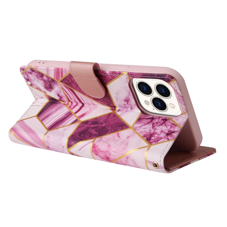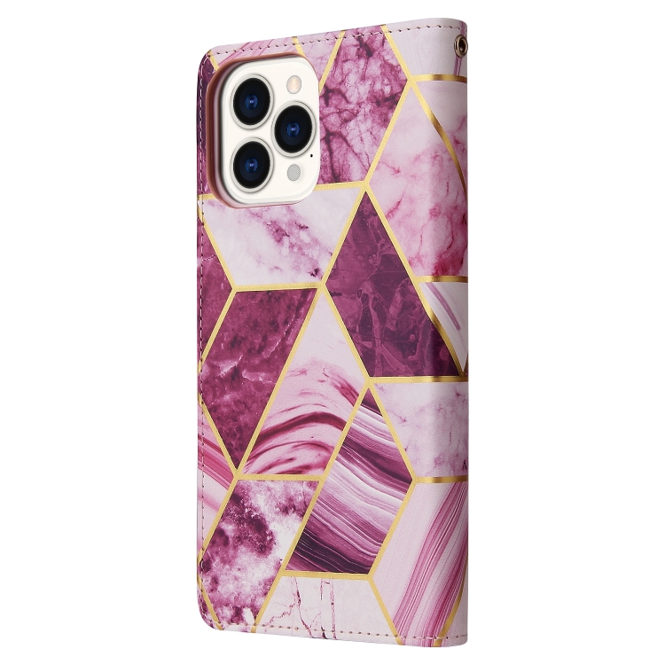 Funda de Cuero para iPhone 13 Pro Marble Bronzing Stitching Horizontal Flip con Soporte y Ranuras para Tarjetas y Billetera (Púrpura)