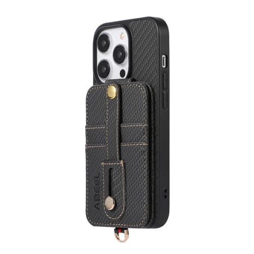 Caja de teléfono Abeel para iPhone 13 Pro Max con soporte de tarjeta RFID de fibra de carbono (Negro)