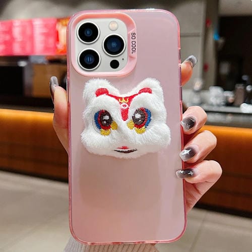 Funda para Teléfono iPhone 13 Pro Max Lion Dance Plush Doll León Blanco con Espalda Rosa