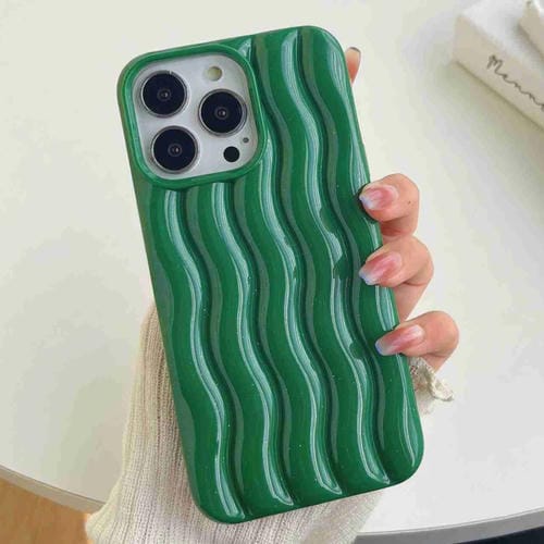 Funda para iPhone 13 Pro Max Barnizado 3D Water Wave Texture (Verde Oscuro)