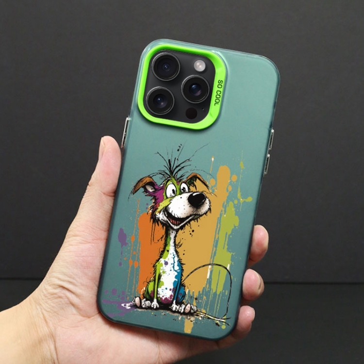 Funda para iPhone 13 Pro Max Color Ink Frosted PC y Estuche TPU Perro Tonto