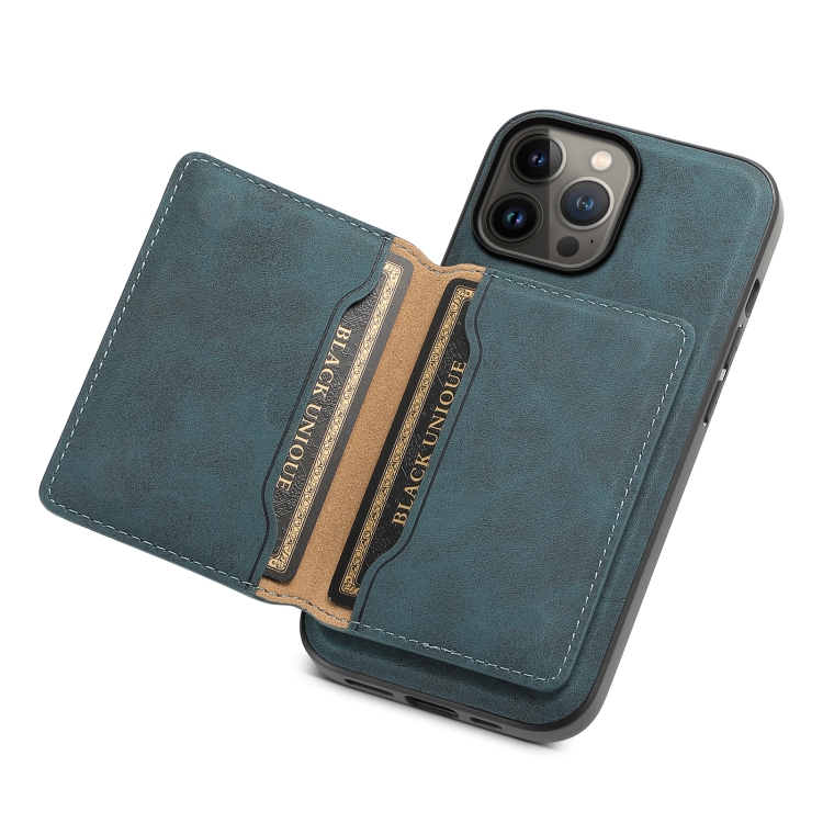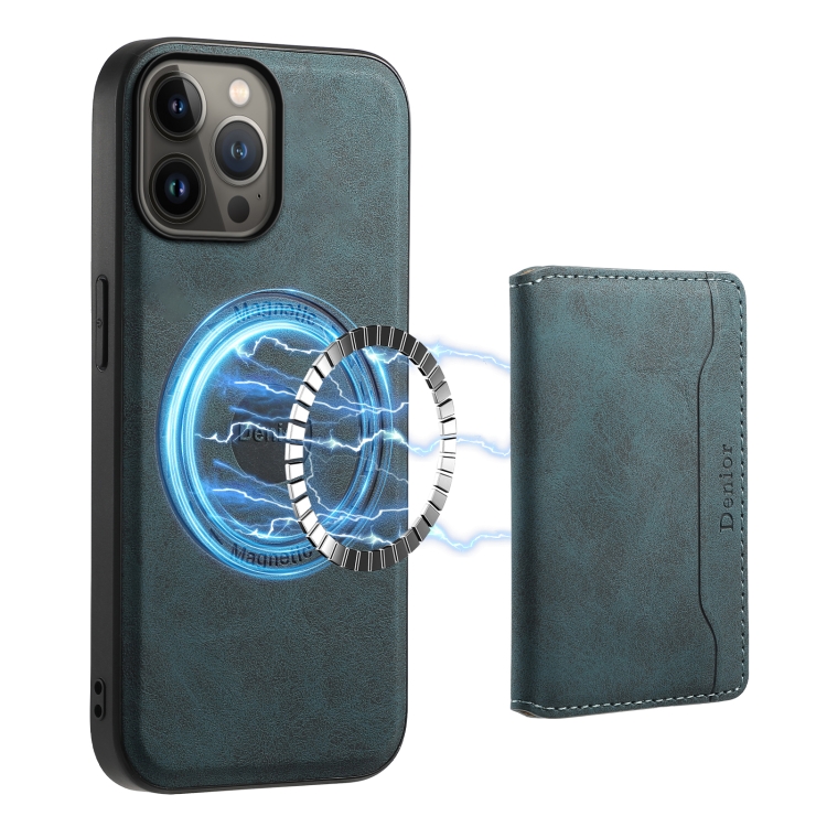 Funda para Teléfono Denior D13 iPhone 13 Pro Max con Bolsa para Tarjeta Magsafe Cuero Textura Retro (Azul)